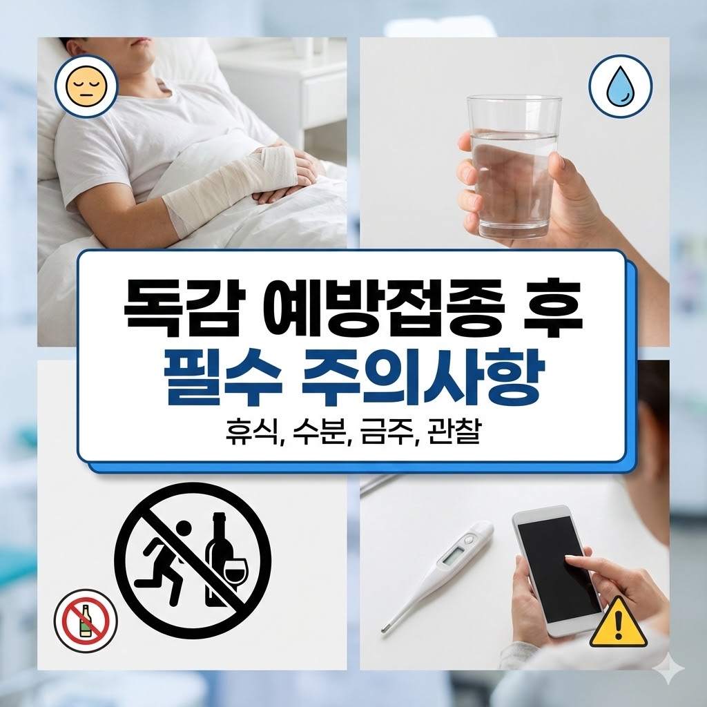 접종 후 20~30분간은 반드시 병원 근처에서 기다렸다가 귀가하는 것이 좋습니다. 급성 알레르기 반응이 드물게 나타날 수 있기 때문입니다. 또한 접종 부위를 세게 주무르거나 과도한 움직임은 피해야 합니다. 이 시점에서도 가장 기본적인 독감 예방접종후 주의사항이 적용됩니다.
